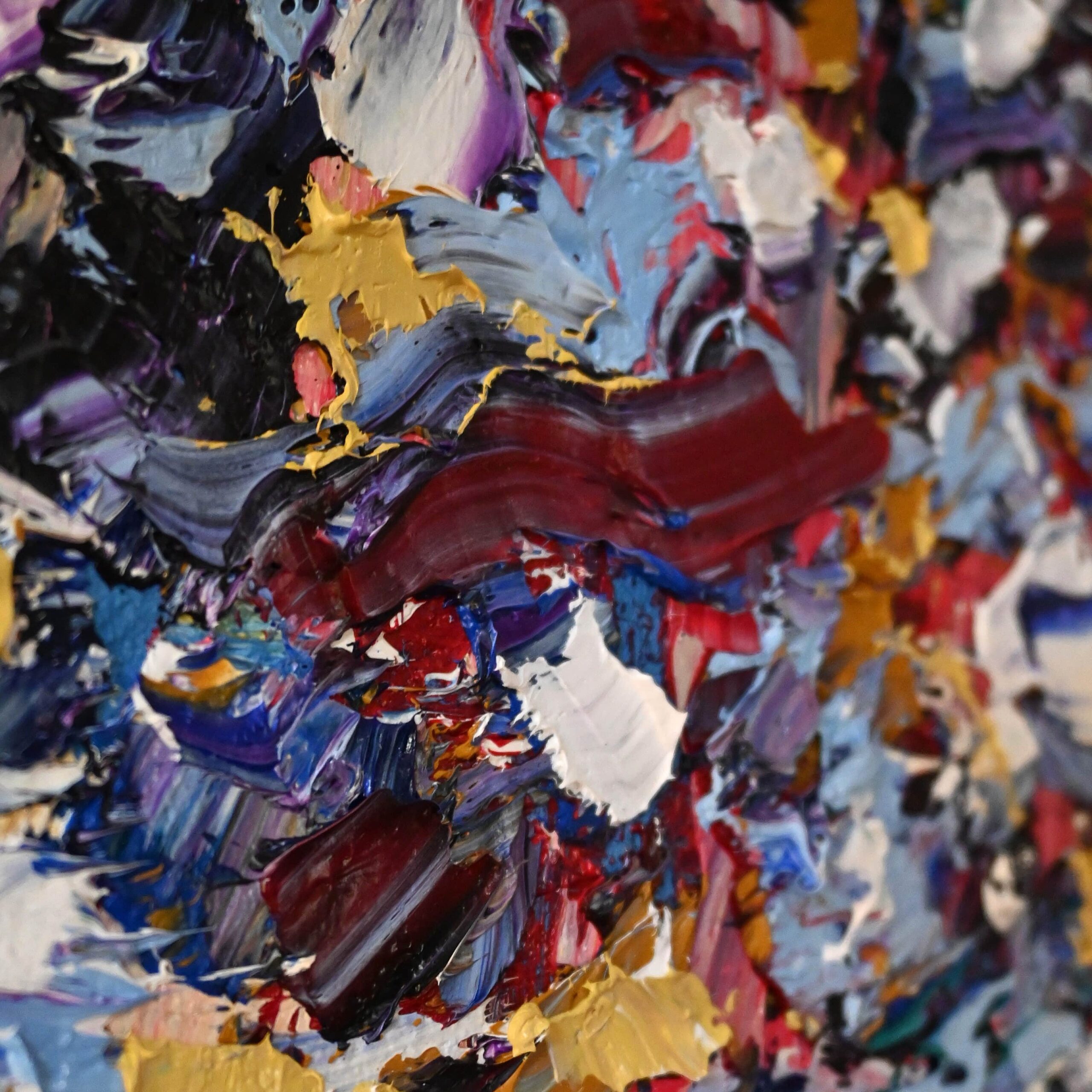Ova gurmanska ekspresija je stvarana u tradiciji apstraktnog ekspresionizma, stvarana je tehnikom impasto za stvaranje bogate teksture i dinamične kombinacije boja. Dominantne boje – plava, bijela, žuta, crvena i ljubičasta – stvaraju harmoničan osjećaj kretanja i energije. Ova tehnika omogućava promatraču da osjeti emociju. Ova slika je gotovo pa taktilni predmet koji pruža jedno nadnaravno iskustvo.